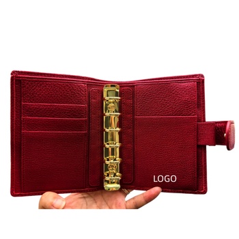 Luxury Custom Litchi PU Leather A6 A7 Wallet with Gold Ring Zip Budget Folder Money Envelopes Organizer Budget Planner